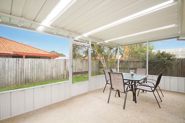 Fully enclosed pergola outdoor entertaining area flows onto lush gardens
