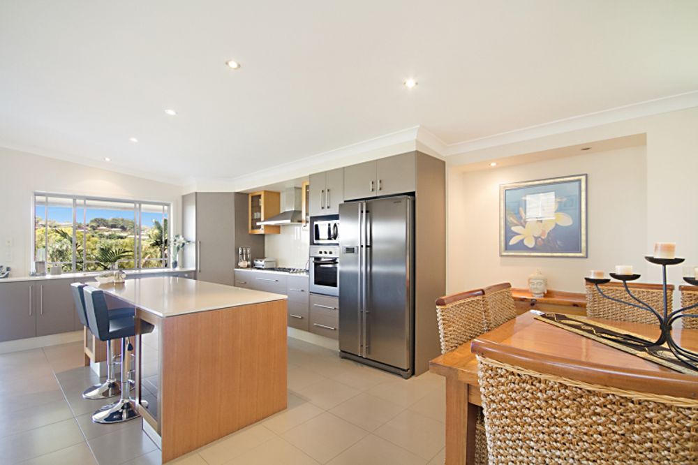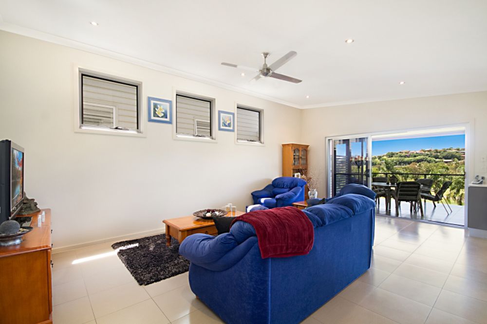The beautifully finished family home presents an integration of contemporary interiors and outdoor entertaining areas that capture a gorgeous golf course outlook.