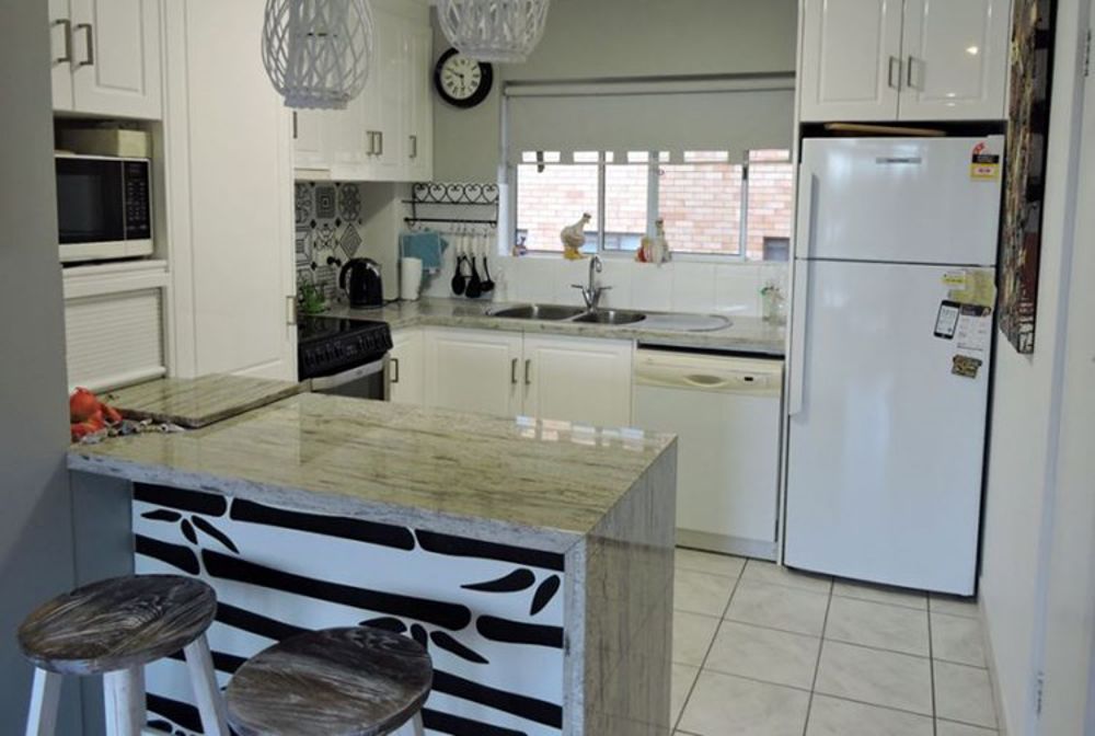 The two bedrooms are segregated from the main living the space, the master positioned to the front of the unit boasting the stunning view, built in robes, one with built in study desk, and ceiling fan. Bedroom two also offers built in robe and ceiling fan plus outside louver for rain protection. The bathroom has been updated with glass encased shower, tidy vanity and separate bath.