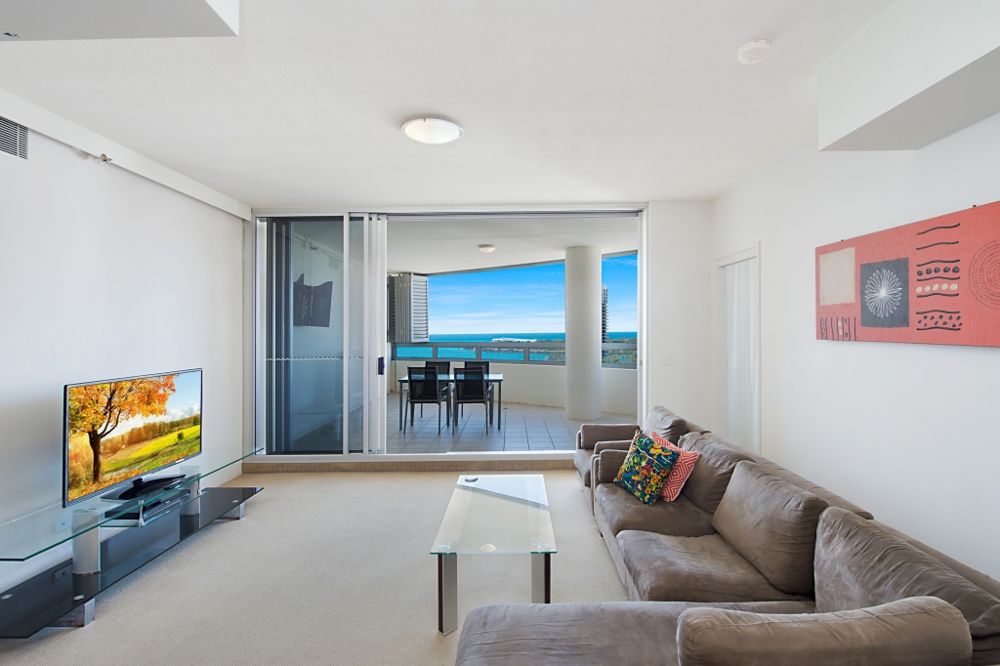 Open plan living flowing through stackable glass sliding doors to a huge, covered and enclosed balcony with bi-fold shutters. Situated on the 10th floor of the North Tower, Tweed Ultima has all the resort style facilities you'll ever need.