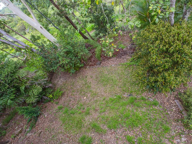 While the land is sloping there is a usable flat section at the bottom of the yard.