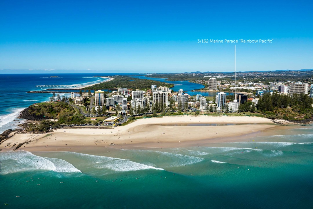 This 1st Floor apartment features views over world famous Rainbow Bay & Snapper Rocks Surf Break. Circa 1967 ripe and ready for your style of renovation.