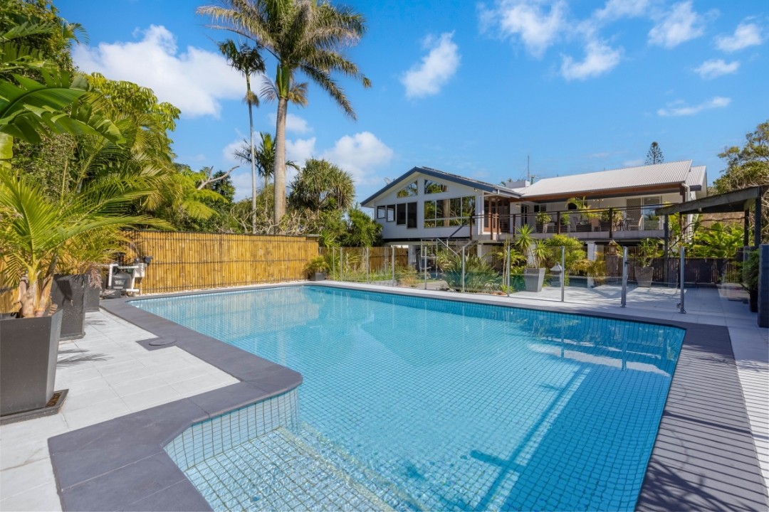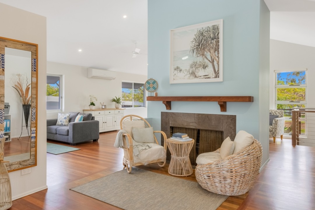 Sustainability is well-considered here, with solar panels for electricity and hot water, plus two 5,000L water tanks to help keep the gardens thriving. The home borders a council reserve to the side, providing peaceful green space and convenient access to Wommin Lake, perfect for kayaking, paddleboarding, or enjoying the outdoors. With the Tweed River just across the road, you can fish, kayak, or launch the boat with ease and soak up the holiday vibes every day.