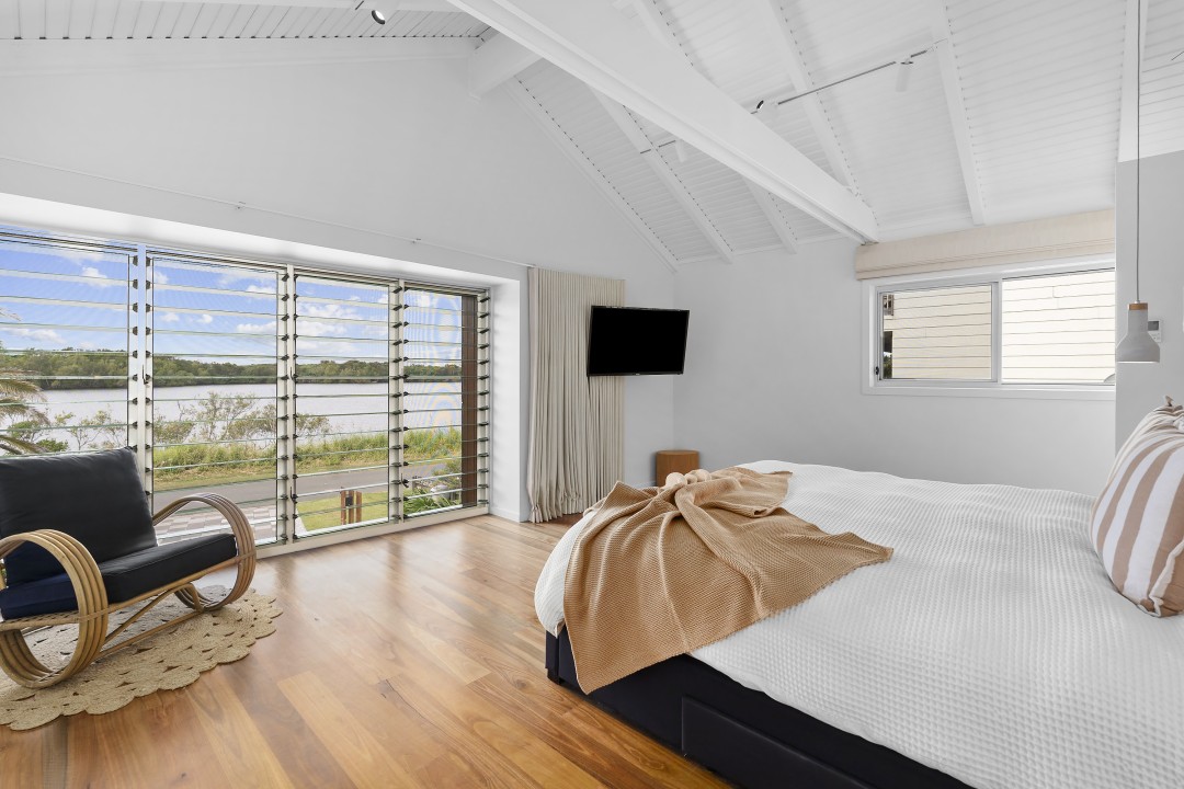 Discover an extraordinary lakefront retreat in one of Fingal Head's most desirable locations. Set on an expansive 817m² block and embraced by tranquil Wommin Lake to the east and a lush nature reserve to the north, this fully architecturally renovated residence combines privacy, elegance, and the ultimate coastal lifestyle.