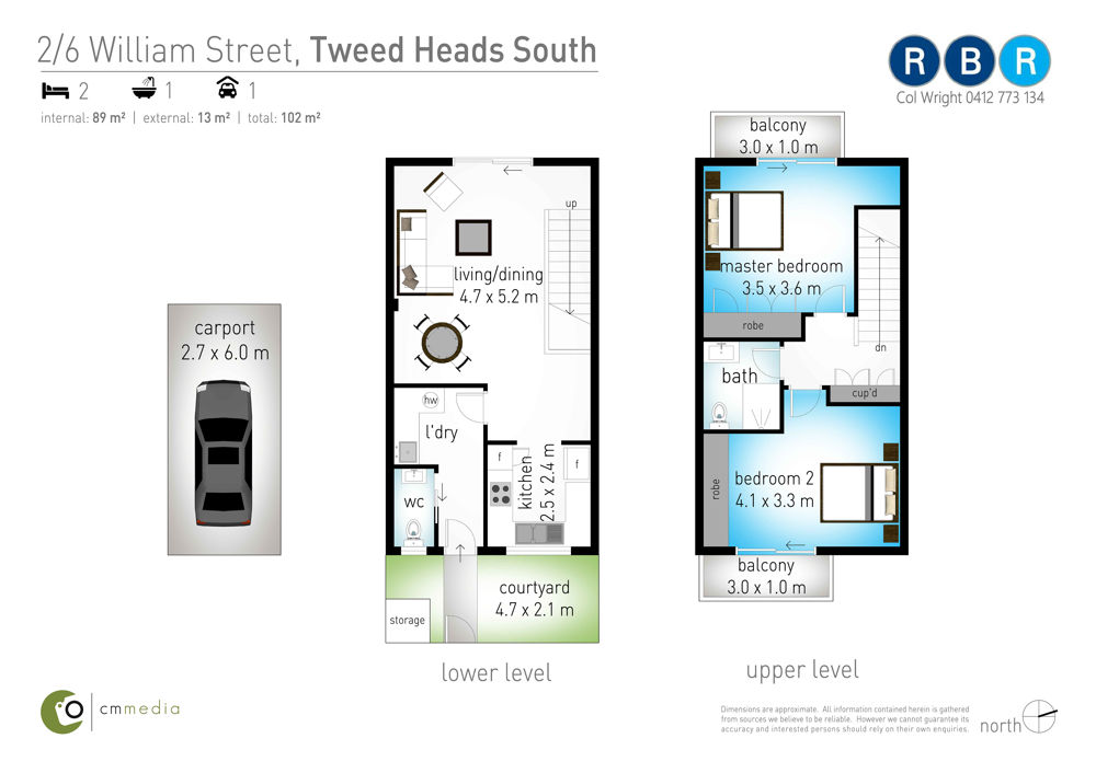 * The two bedrooms have built-in wardrobes and private, sunlit balconies - Contemporary main bathroom located on the upper level.