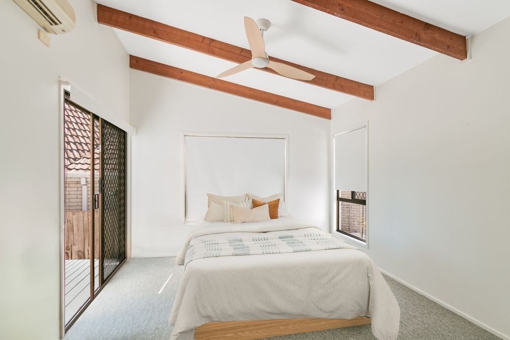 - Three comfortable bedrooms, all with ceiling fans and carpeted floors
