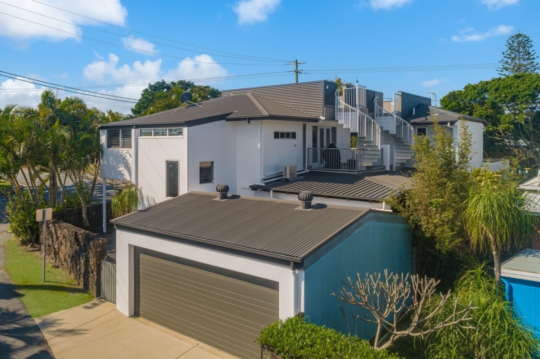 Spread across three light-filled levels, the home has been thoughtfully designed for modern living, with multiple entertaining spaces and a showstopping rooftop terrace offering 360-degree views across the ocean, river and hinterland.