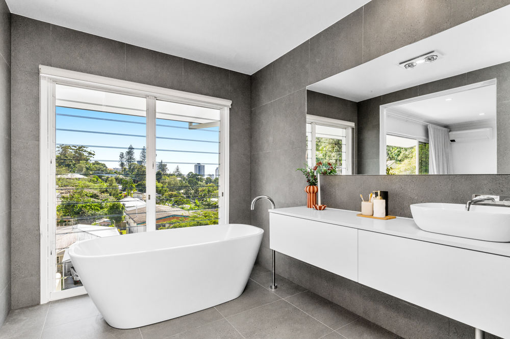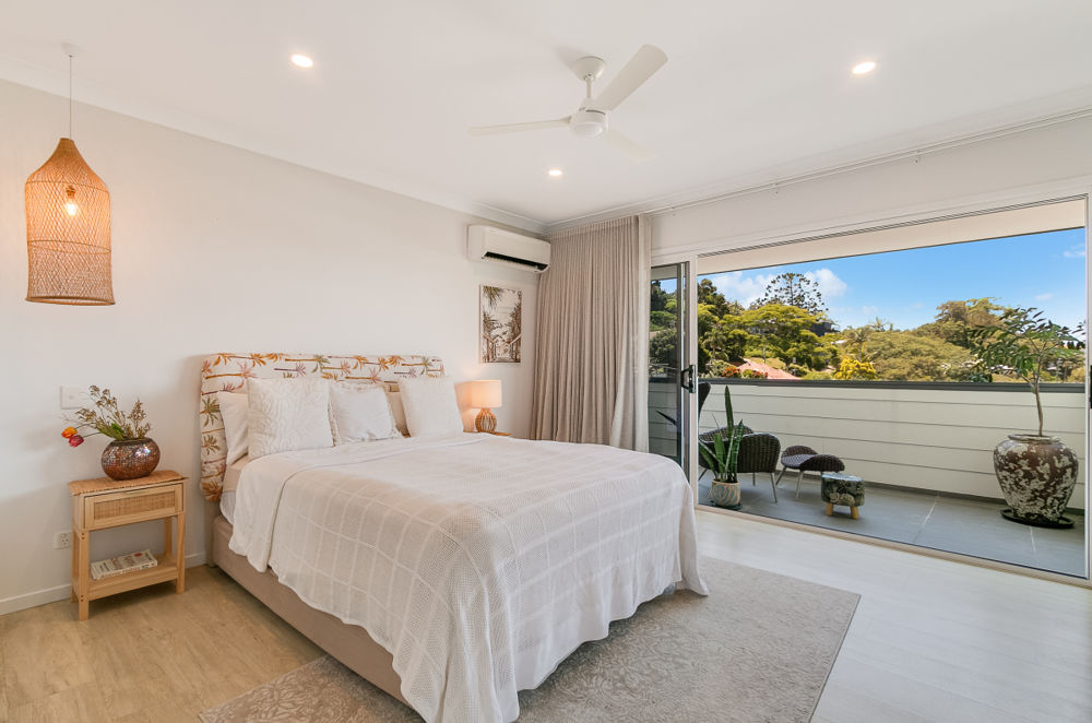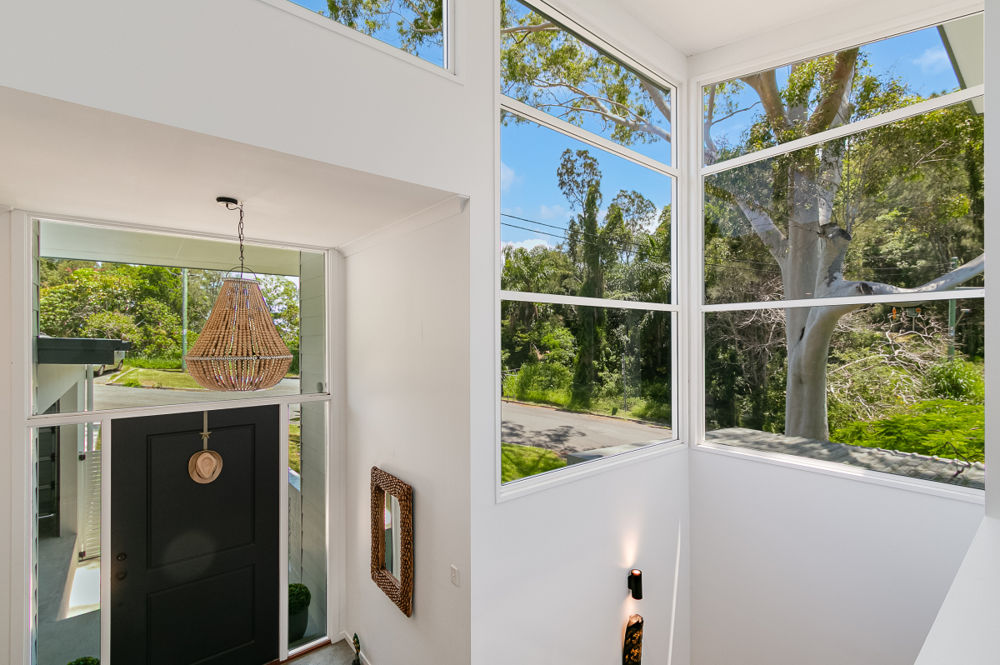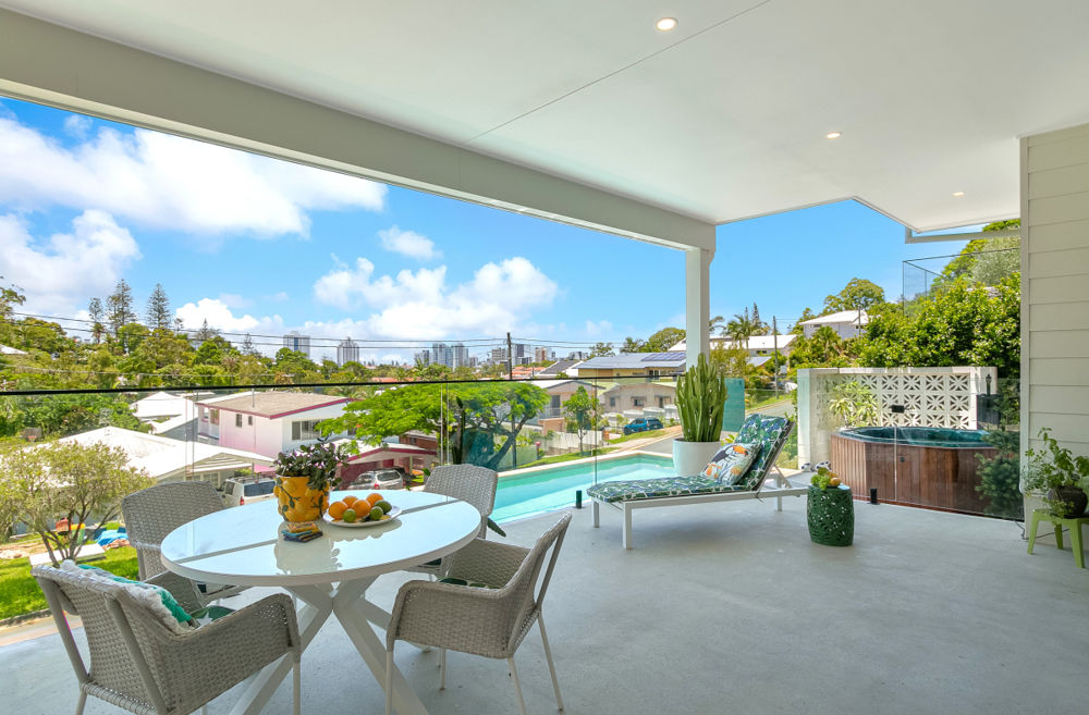 Elevated and north-facing this impeccably designed home captures the breezes and looks back towards Coolangatta skyline to the ocean. Situated atop a hill on a prominent corner block