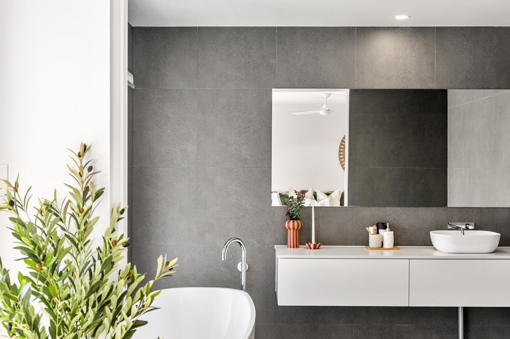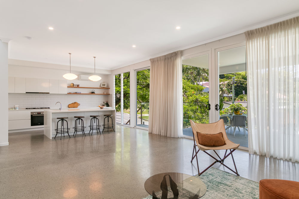 Bathed in natural light, the open-plan design flows seamlessly from polished concrete interiors to the north-facing alfresco and pool terrace. Entertain in style with a chef's kitchen featuring Bosch appliances, stone benchtops, a central island, and a full butler's pantry. High ceilings, feature breezeblocks, and thoughtfully chosen finishes add to the home's contemporary coastal feel.