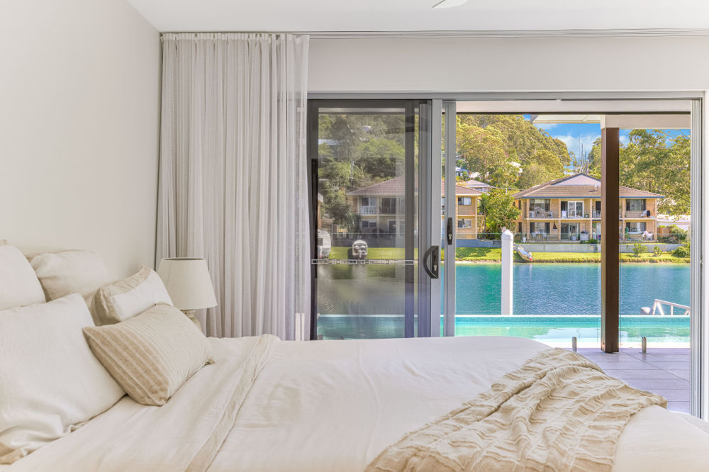 Mornings begin with sunlight spilling across the water. Afternoons flow between a swim in the resort-style pool and launching the boat from your private pontoon or side-access boat ramp - a rare combination in this pocket. Evenings settle into golden sunsets across the river, best enjoyed from the alfresco terrace or the open-plan living room that captures the view like a living piece of art.