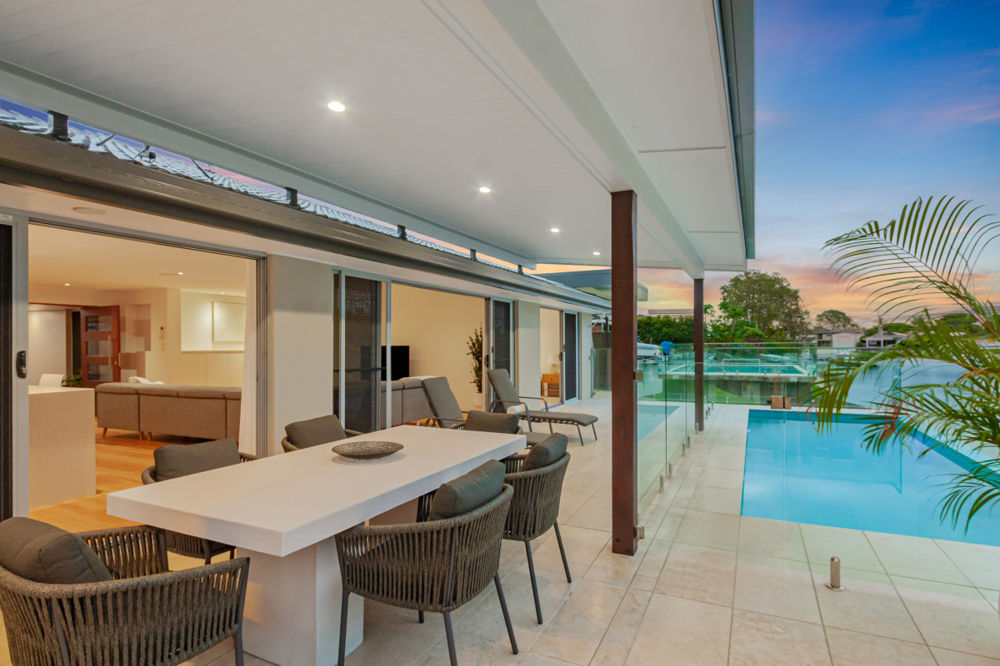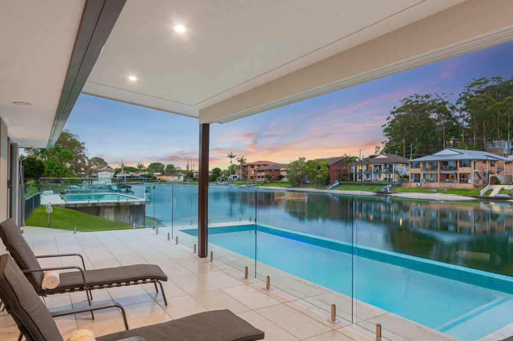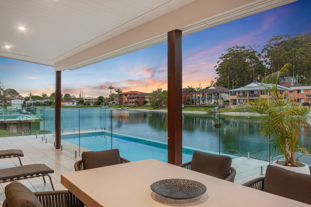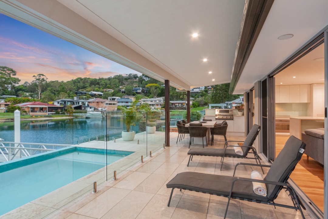 - Stunning alfresco entertaining area within built BBQ, resort style pool overlooking the river, enclosed with glass fencing & private pontoon