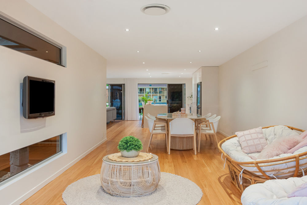 Renovated to an exceptional standard, the home unfolds with a refined coastal aesthetic. Golden Blackbutt timber flooring, light-filled living spaces and a layout designed to frame uninterrupted north-facing water views at every opportunity. The result is a home that offers understated luxury with the space for a family to grow and thrive.
