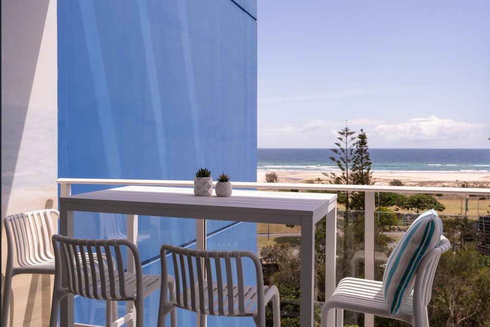 - ocean view balcony with mural art wall that infuses coastal charm into the outdoor experience