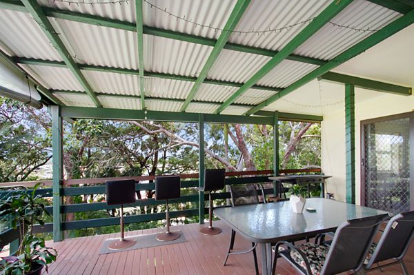 - Large entertaining deck showcasing a natural bushland setting