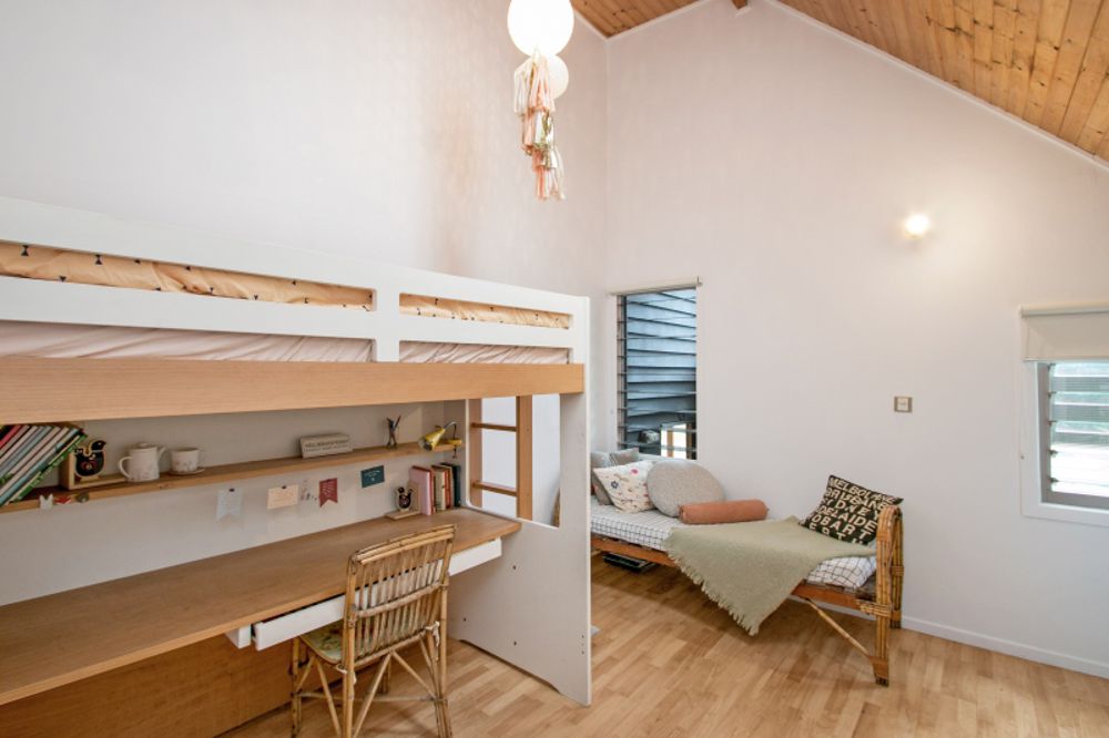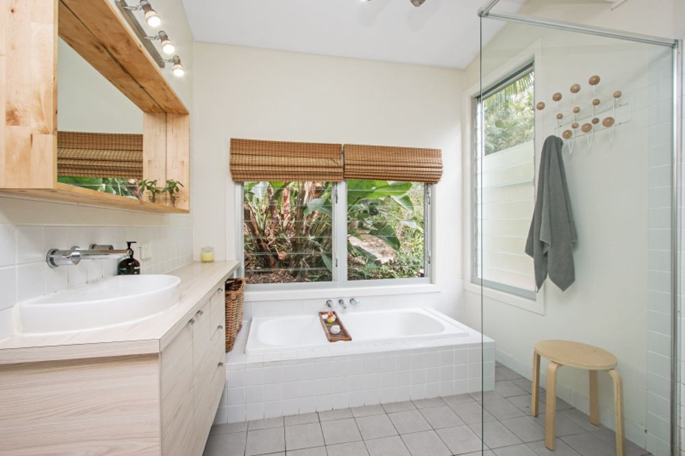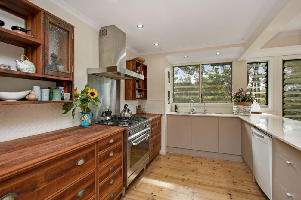 The custom designed kitchen equipped with stainless steel appliances, stone and timber bench tops, filtered water on tap, encourages easy entertaining. A wood heater and carefully designed floor-to-ceiling louvres maximise cross-ventilation, making the home comfortable and cosy all-year round.