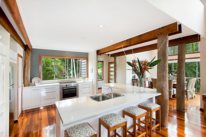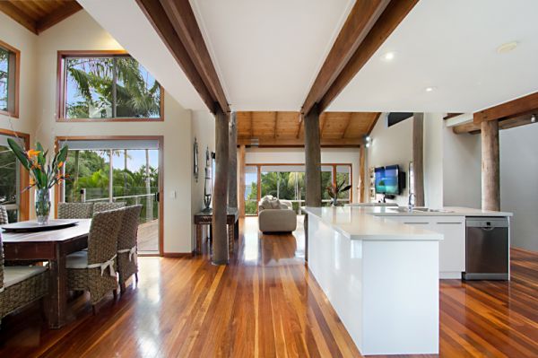 Step inside and be swept away with the grandness of the high raked cathedral ceilings, polished timber floors and large viewing windows capturing the spectacular Terranora Broadwater scenery.