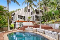Large, open plan living areas flow to a timber deck overlooking the sparkling in-ground pool with LED colour lighting and landscaped gardens. Surrounded by a variety of manicured palms and trees, entertain guests in serenity with uninterrupted views and cool ocean breezes.