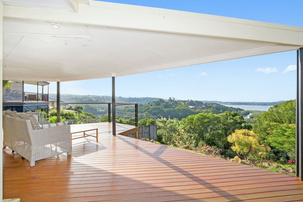 - The deck overlooking the view stretches from the lounge around to the master bedroom