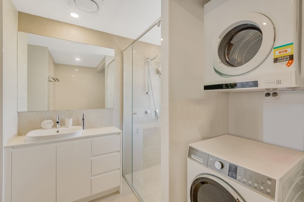 - Hideaway laundry with storage, external access to clothes line