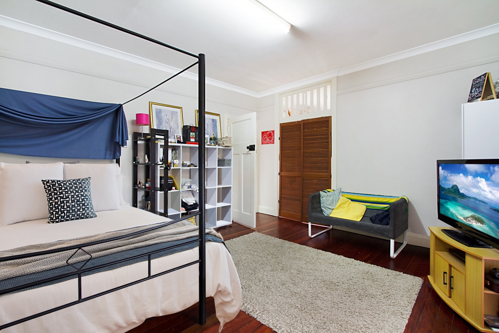 - Large main bedroom with french doors to main living area