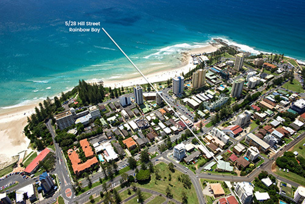 Right on the cusp of Rainbow Bay this simple plan studio sits elevated to capture the breezes and offers a enviable lifestyle being walking distance to a choice of beaches, headlands and boat harbour.