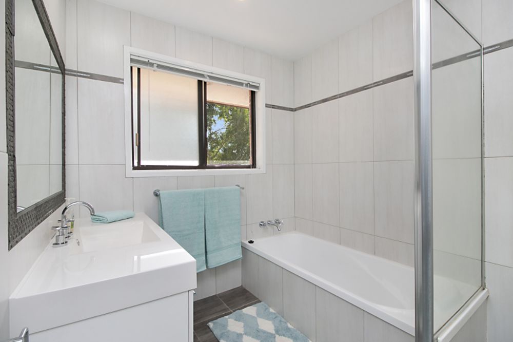 Spread over two spacious levels with light filled interiors upstairs provides an air-conditioned open plan kitchen, dining and living room with access to the covered, timber deck spanning the length of the home. Three spacious bedrooms offering ceiling fans, fresh carpet and built-in wardrobes - two of these bedrooms have direct access to the rear courtyard, renovated bathroom with floor to ceiling tiles and a separate toilet.