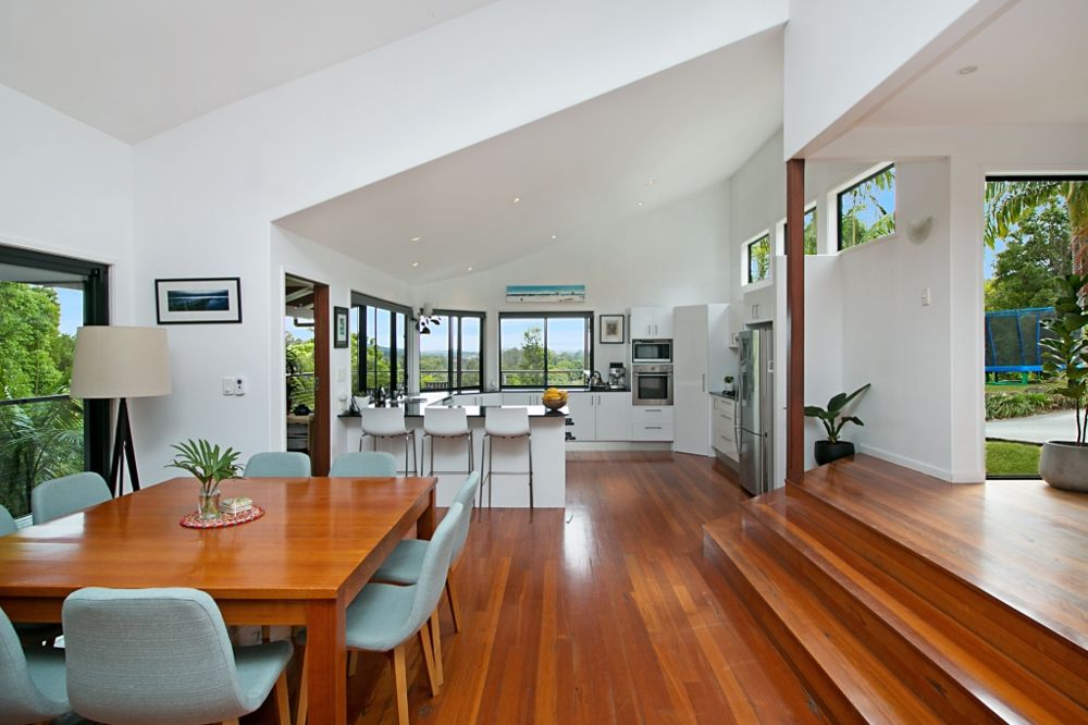 This beautifully presented four bedroom including study nook is split level and unfurnished. Boasting the following features, open plan living/dining areas, hardwood timber floors, fireplace, high ceilings, modern two pac kitchen with gas cook top, dishwasher and ample cupboard space/breakfast servery. Carpeted bedrooms, master bedroom features large walk-in robe with ensuite/spa and double shower heads and private balcony. Bi-fold doors open onto various outdoor living areas, serviced swimming pool, double car accommodation and loads of storage areas. Sit back, relax and enjoy all the wildlife and tranquility this property has to offer. Pets allowed!