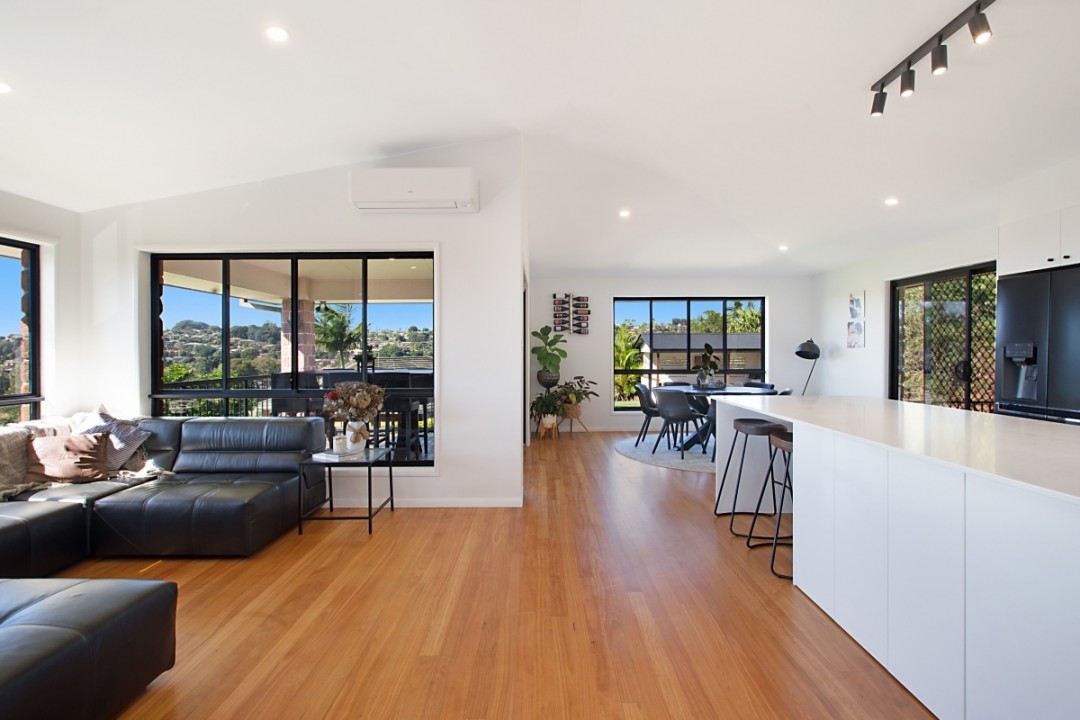 Elevated on a private 1356m2 (approx) block this stunning home is north facing with views. The indoor and outdoor entertaining areas make this the perfect functional family home.