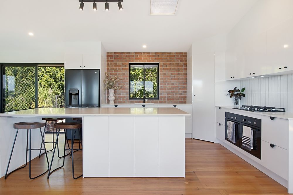 * This kitchen is stunning, double oven, gas cooktop, dishwasher, island bench with seating and stone top, storage, soft closing draws