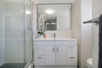 - Master bedroom with partially renovated bathroom with plenty of storage