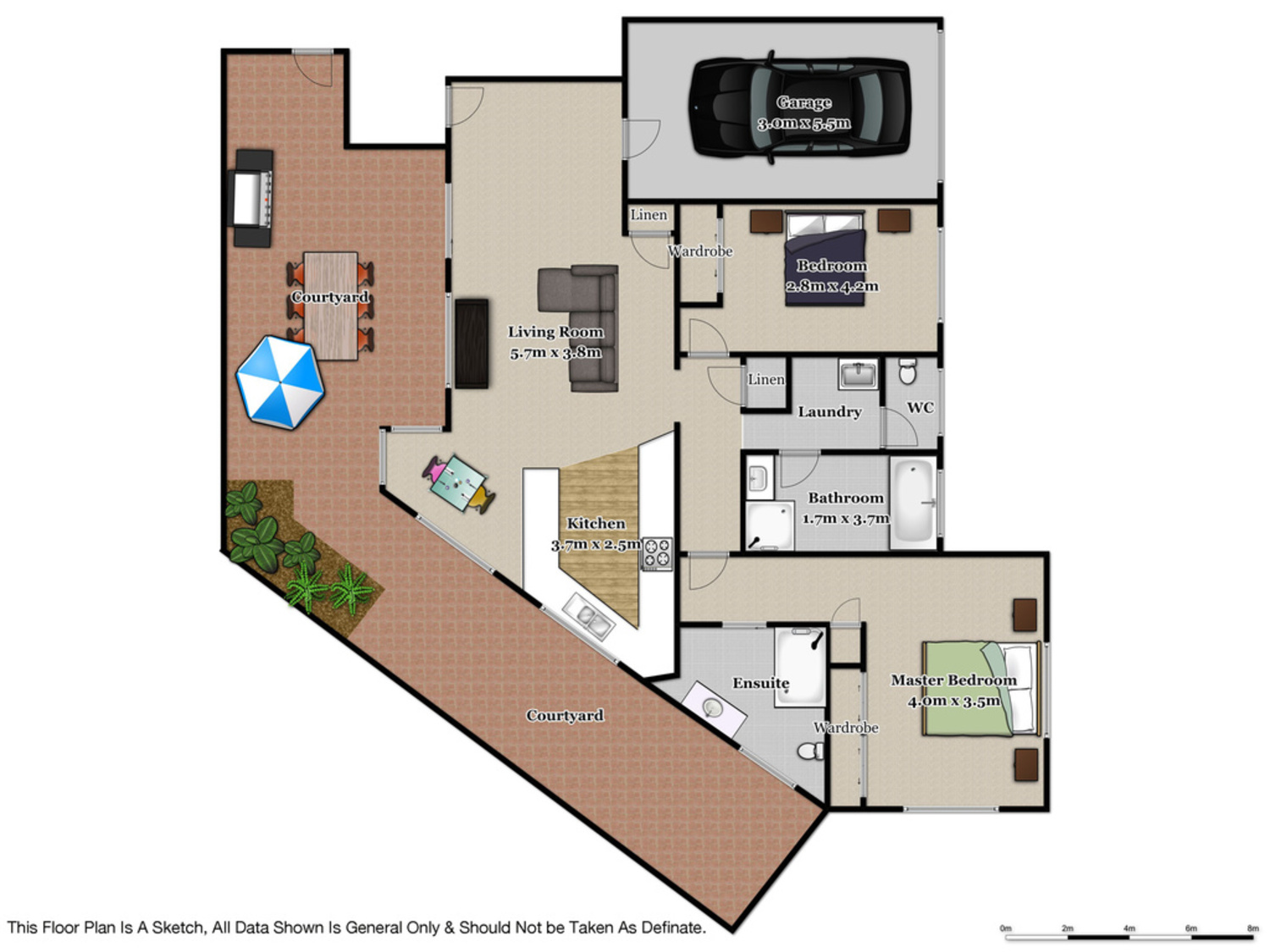This refurbished ground floor apartment is extremely well presented and has the added bonus of a large L shaped courtyard/entertaining area.