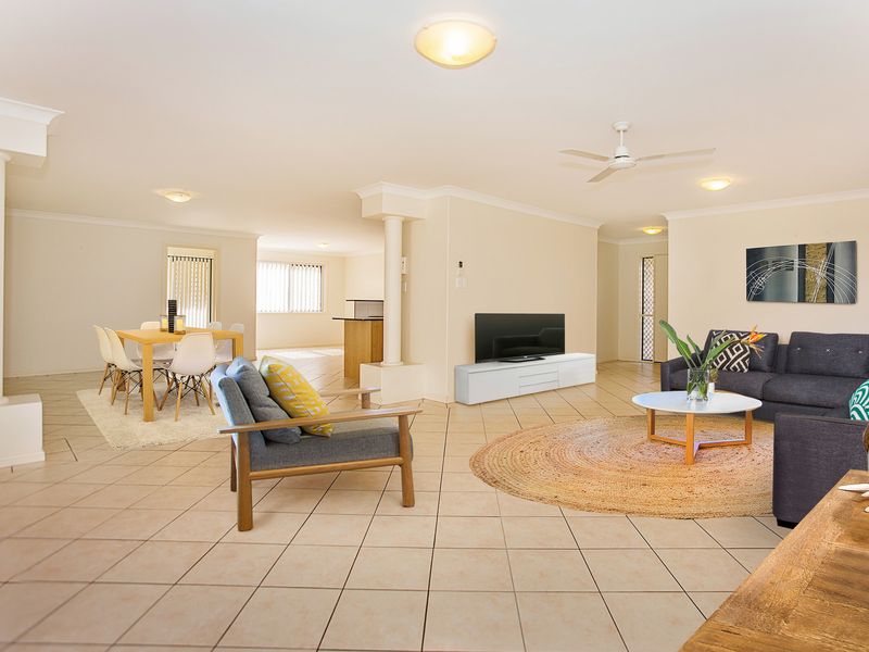 The quality kitchen offers stone bench tops, dishwasher, large pantry and plenty of cupboard space.