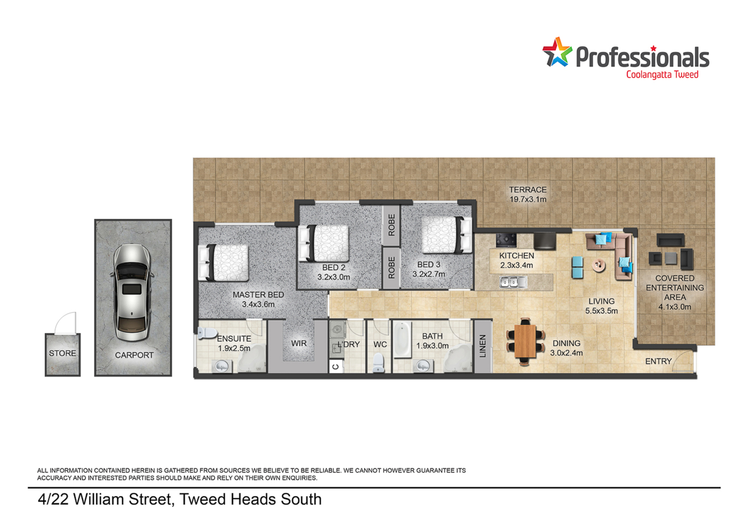 The spacious, air conditioned, open plan kitchen/living/dining area leads out to the covered entertaining area that wraps around to a huge terrace area, which is absolutely perfect for entertaining guests and exclusive to your apartment.