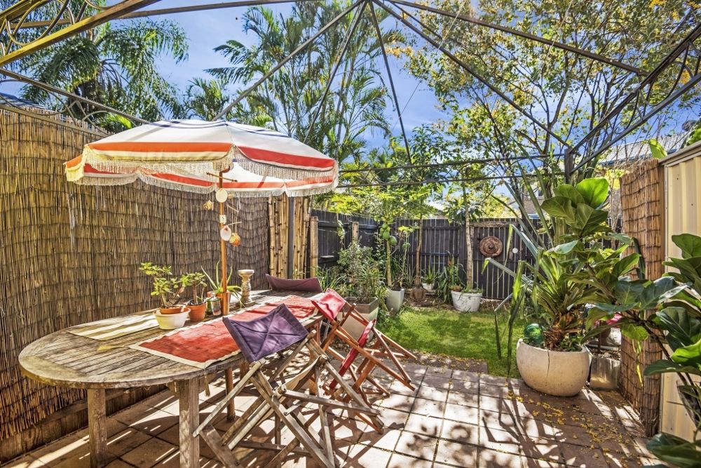 The living area is spacious and is combined with the dining room, has nice, modern laminate flooring, and leads you out to the outdoor entertaining area with yard and garden shed.