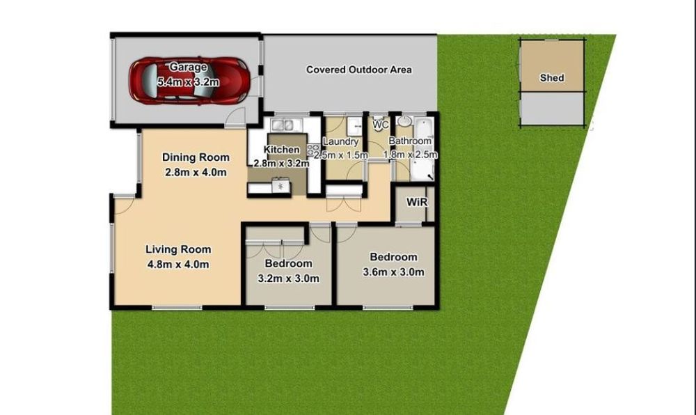 - Fenced yard and covered outdoor area and garden shed