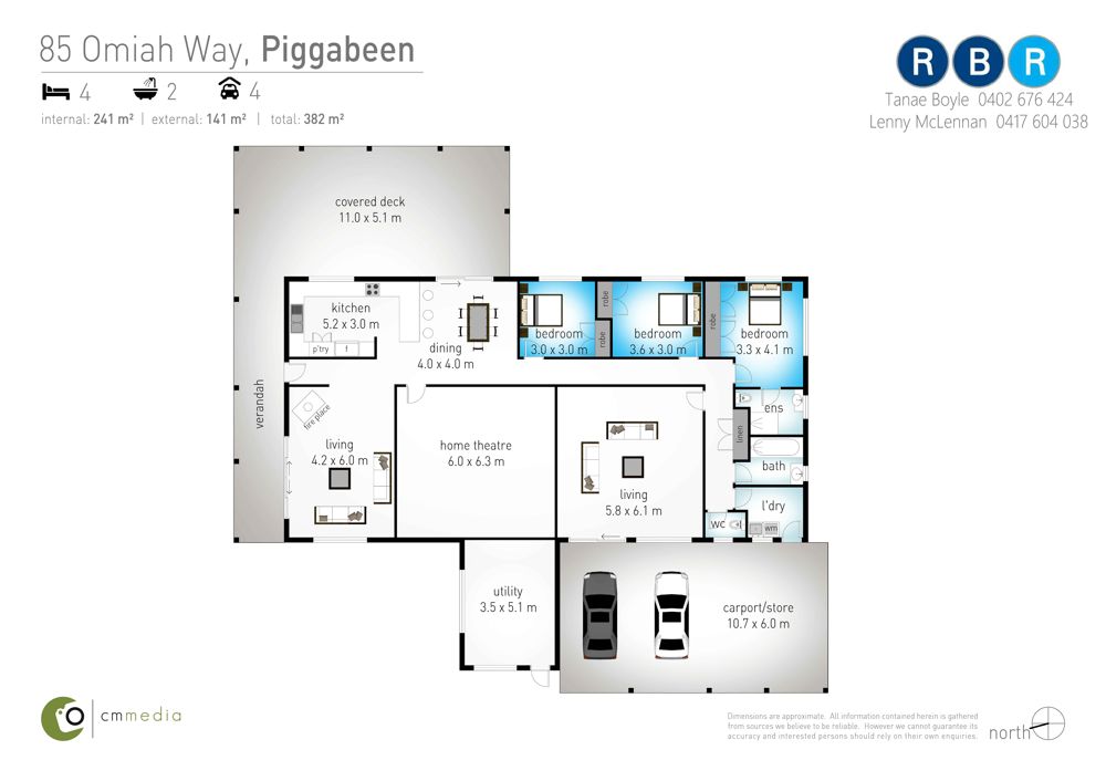 • Car accommodation for 4 cars and a lockable shed
