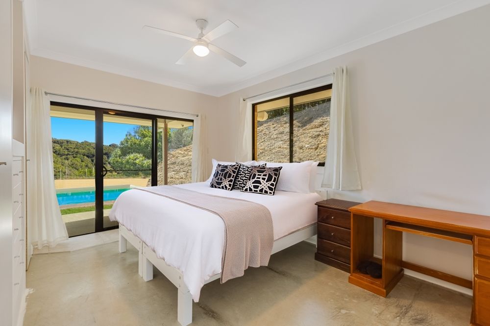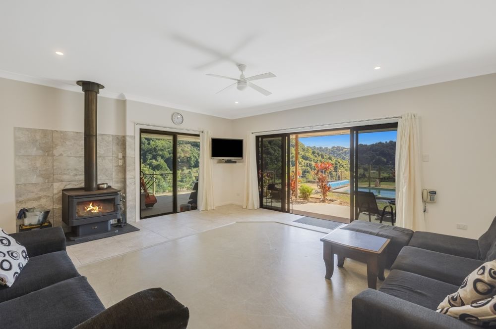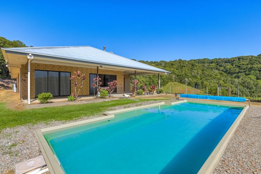Once you are through the entry gate you will think you are in paradise. The driveway winds up to the house lined with assorted fruit trees and lush green grounds. The four bedroom home sits elevated to take in the hinterland outlook. In summer you can have a swim and enjoy the spectacular sunsets.