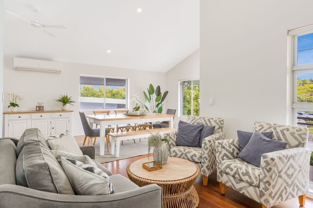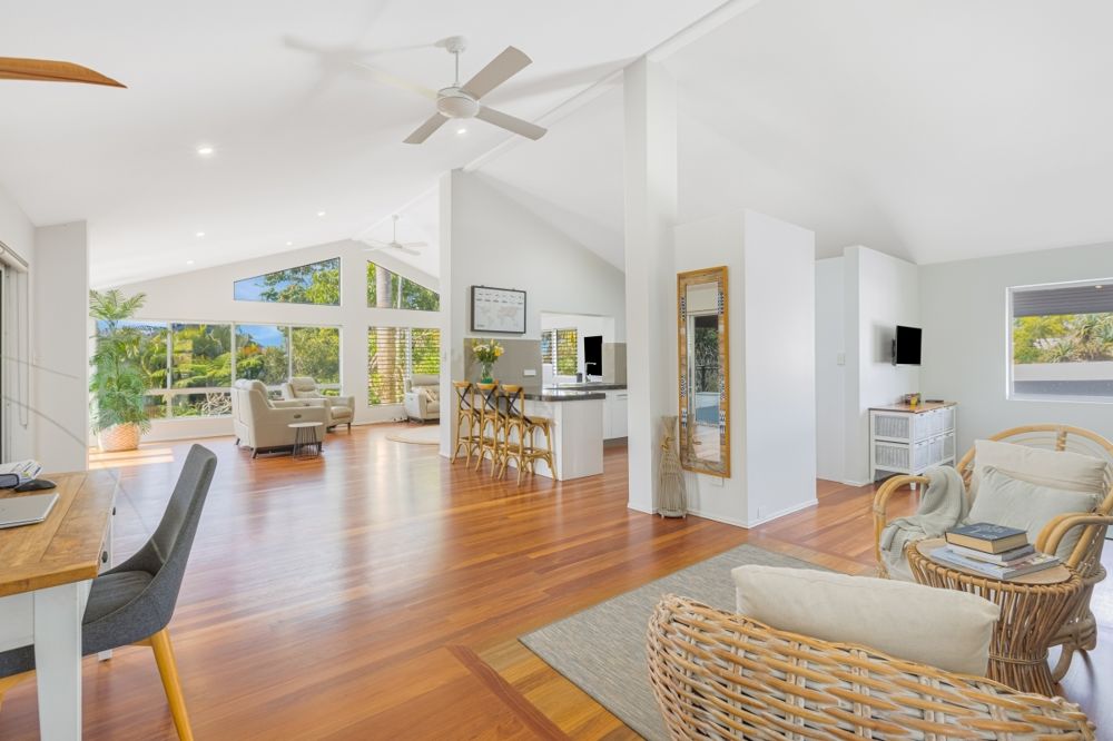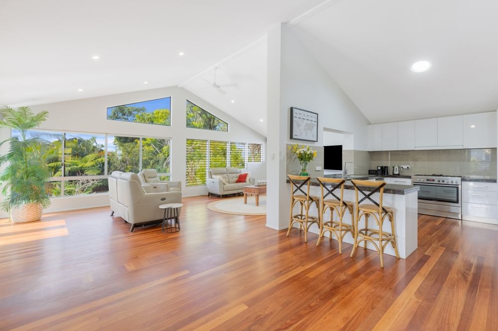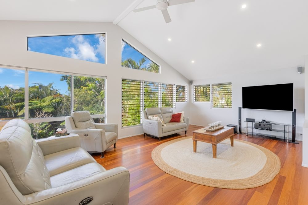 Sustainability is well-considered here, with solar panels for electricity and hot water, plus two 5,000L water tanks to help keep the gardens thriving. The home borders a council reserve to the side, providing peaceful green space and convenient access to Wommin Lake, perfect for kayaking, paddleboarding, or enjoying the outdoors. With the Tweed River just across the road, you can fish, kayak, or launch the boat with ease and soak up the holiday vibes every day.
