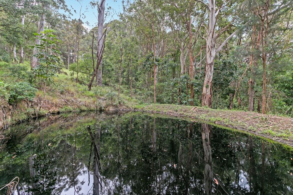 From the front deck, a great flat area includes a basketball court & large dam to the edge of the boundary which runs like a waterfall along the far boundary of the property during heavy rain.