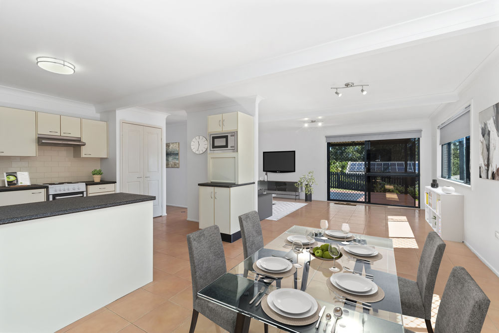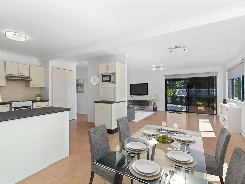 The ground floor also offers a good size family/dining room, spacious kitchen and access to the fenced yard which includes a covered entertaining deck with views to the North out to the Terranora Inlet.