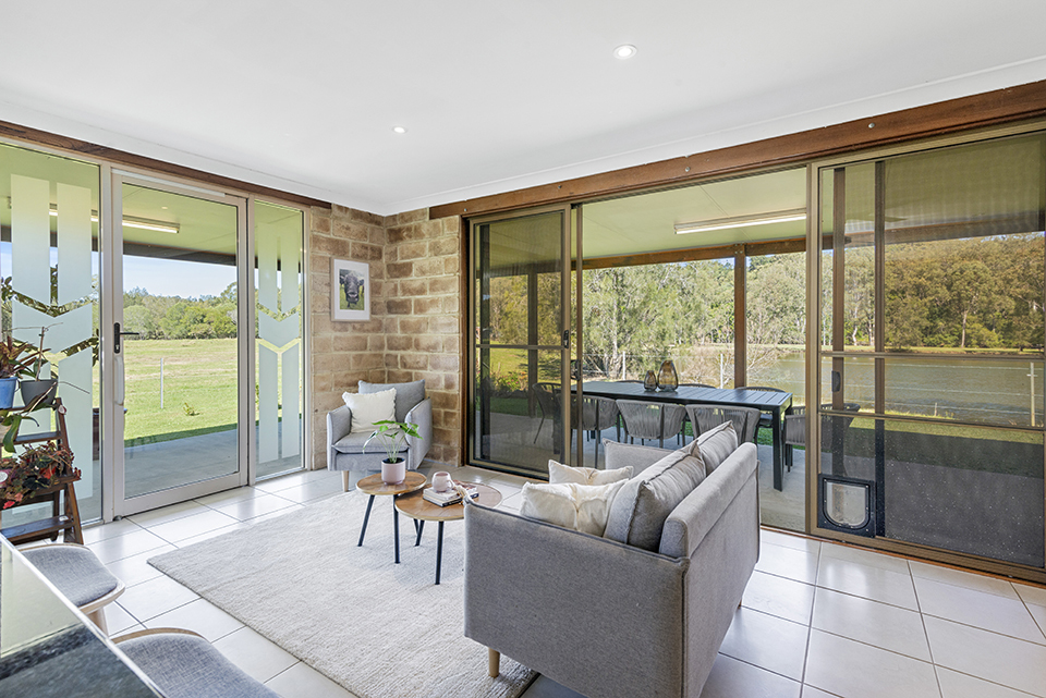 2 generous living spaces with large windows and sliding doors