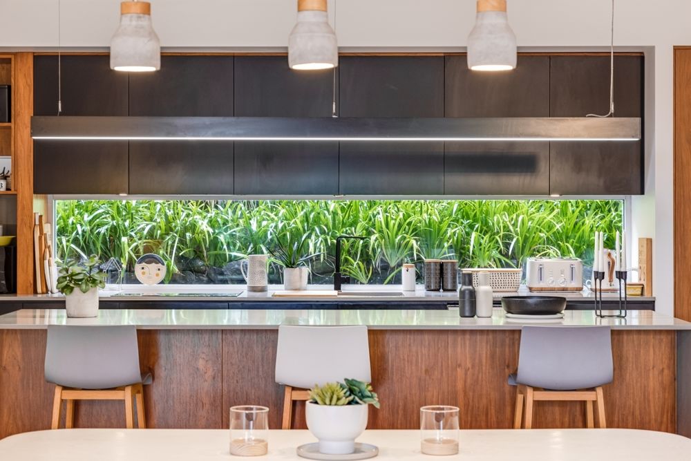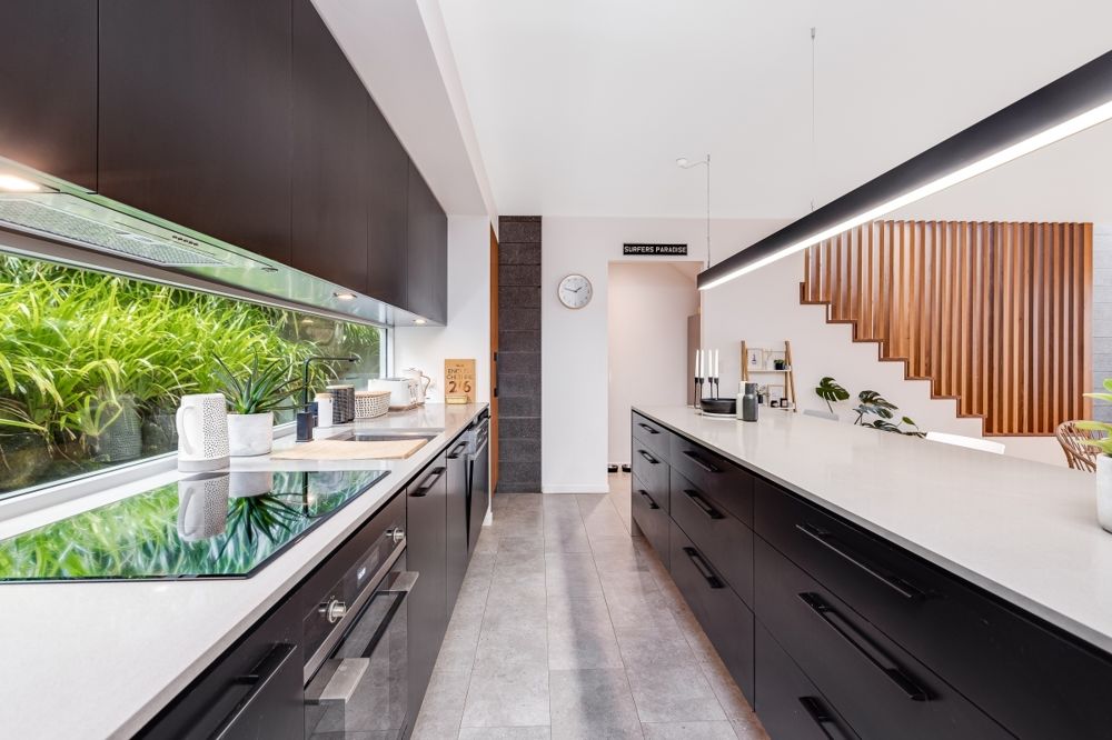 * Gourmet kitchen featuring New Guinea Rosewood, top of the range SMEG appliances, stone benchtops & an abundance of cupboard and bench space