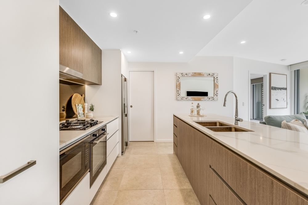 - modern galley kitchen with walk in pantry, dishwasher and gas cooking