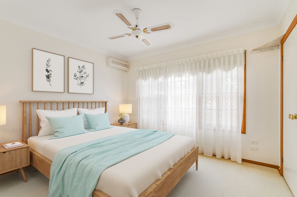 - Two bedrooms, main with built-in robe fan and air conditioning