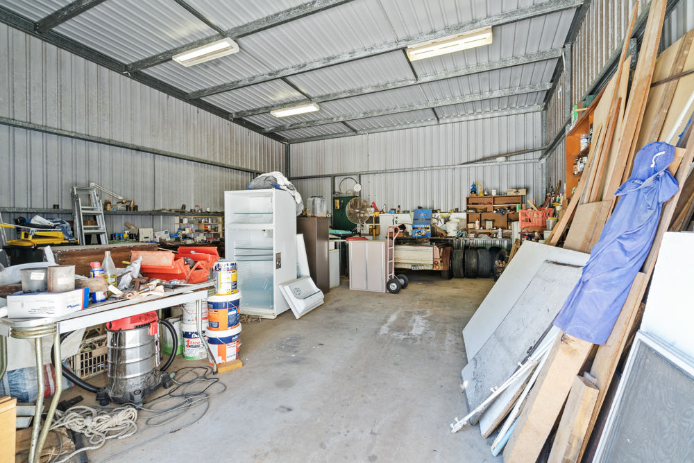The massive industrial shed provides ample storage space for motor-homes, boats, caravan's and vehicles, as well as room for extensive equipment and home projects.