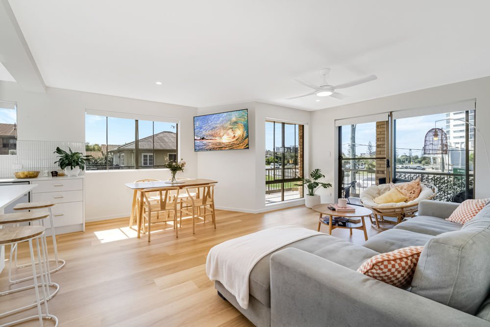 Indulge in the epitome of coastal living with this stunningly refurbished 2 bedroom apartment, exclusively positioned on the first floor to embrace the sun-drenched allure of Kirra Beach.