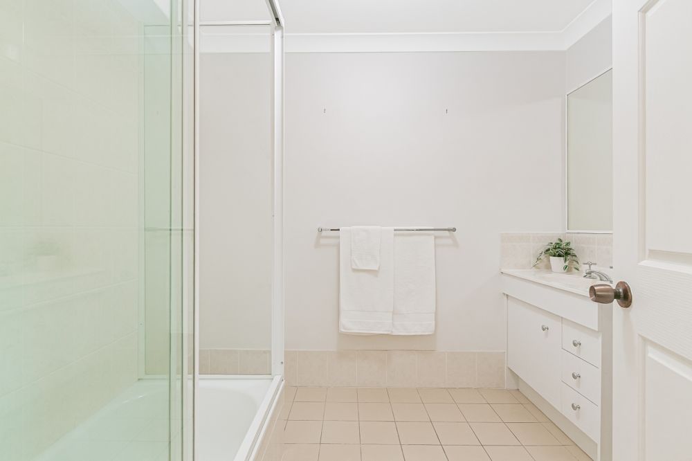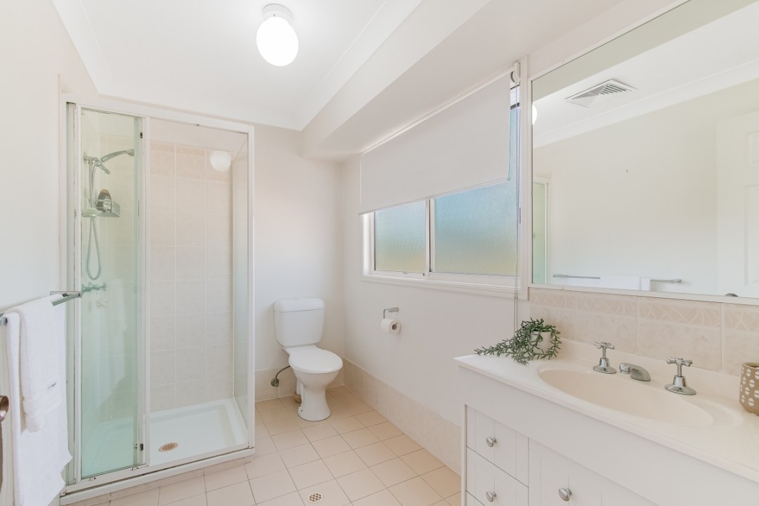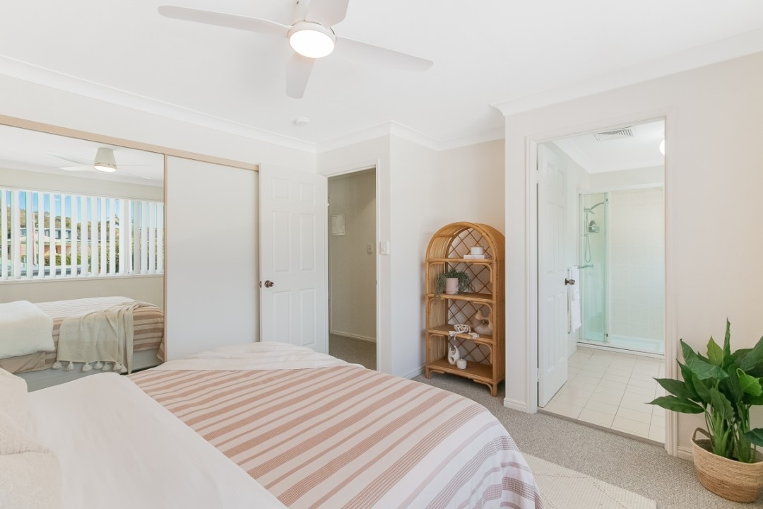 Upstairs, discover three generously sized bedrooms, each featuring ceiling fans and large built-in wardrobes. The master bedroom boasts a spacious ensuite, while the remaining bedrooms share a well-appointed bathroom with a combined bath and shower.