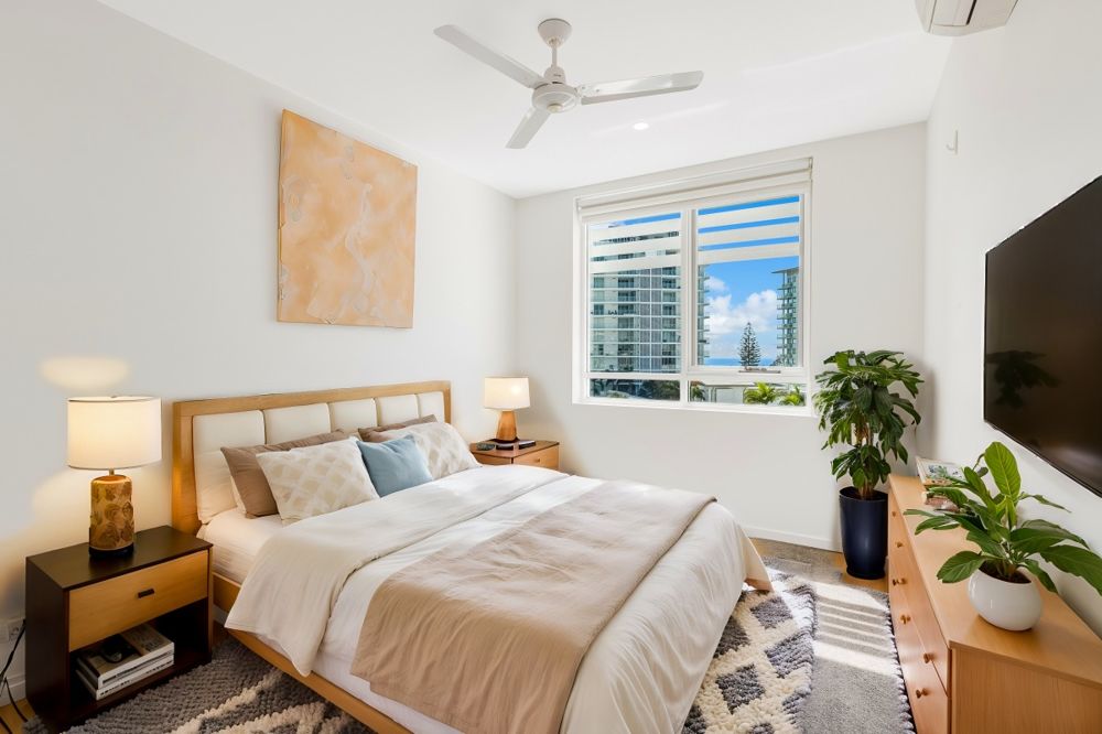 - Air conditioning and ceiling fans throughout the apartment