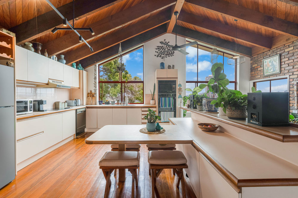 - Open plan kitchen & living space with high raked ceilings enhancing space and natural light