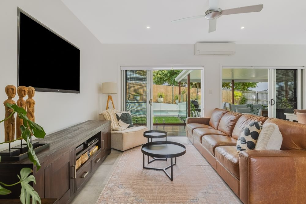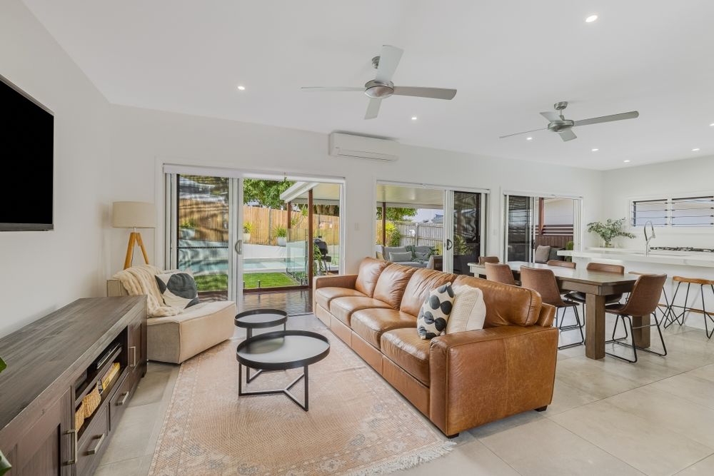 Open dining/living area with air conditioning & a seamless flow to your outdoor entertaining space overlooking the pool